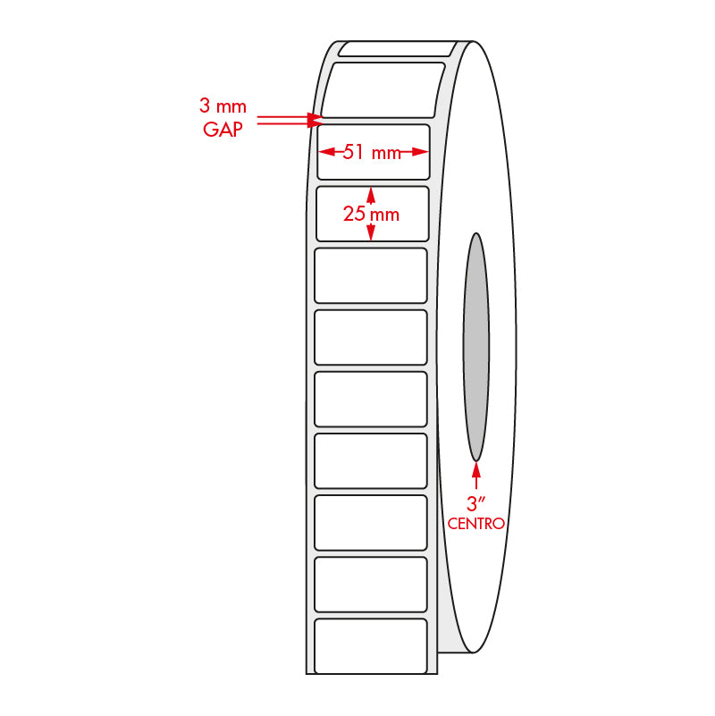 Etiqueta BOPP blanca plastificada, 51X25 core 3 pulgadas, 3000 piezas x rollo