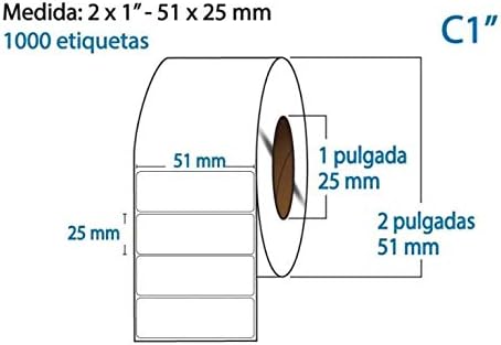 Etiqueta Térmico Directa blanca 1 al paso, 51X25, 1000 piezas x rollo C1