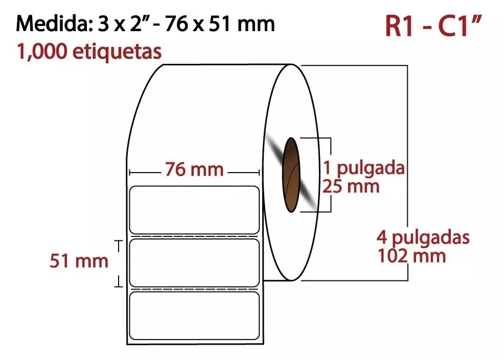 Etiqueta Térmico Directo blanca core1 1000PZS X ROLLO C1 76X51(3X2) pulgadas