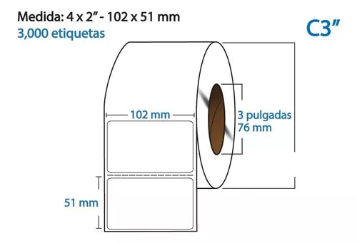 Etiqueta Transferencia Térmica, 102X51, 3000 piezas x rollo C3