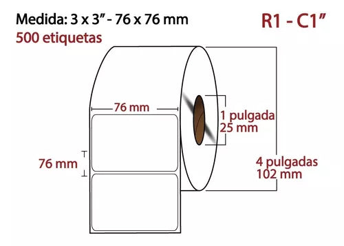 ETIQUETA TRANSFERENCIA TERMICA BCA 76X76(3X3PLG) C1 ROLLO 500PZS