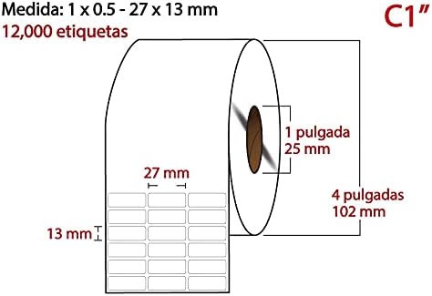 Etiqueta TTR blanca 3 al paso CORE1 12,000PZS X ROLLO C1 27X13