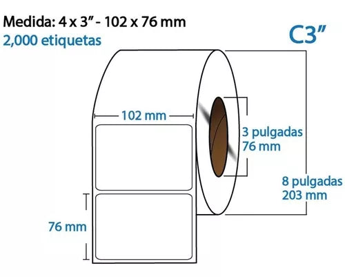 Etiqueta TTR blanca core3 2000PZS X ROLLO 102X76