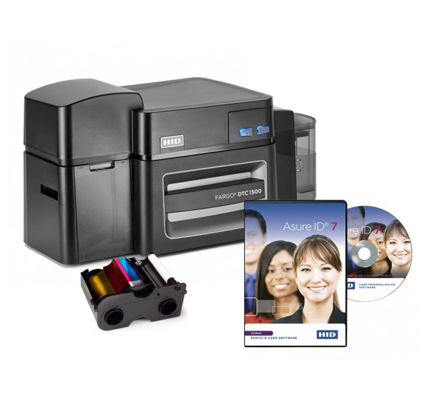 HID DTC1500 Impresora de Credenciales Dual, Sublimación, 300 x 300 DPI, USB 2.0, Negro Incluye 1 Cinta YMCKOK (500 Imágenes) + Software Asure ID Express, 500 credenciales en blanco