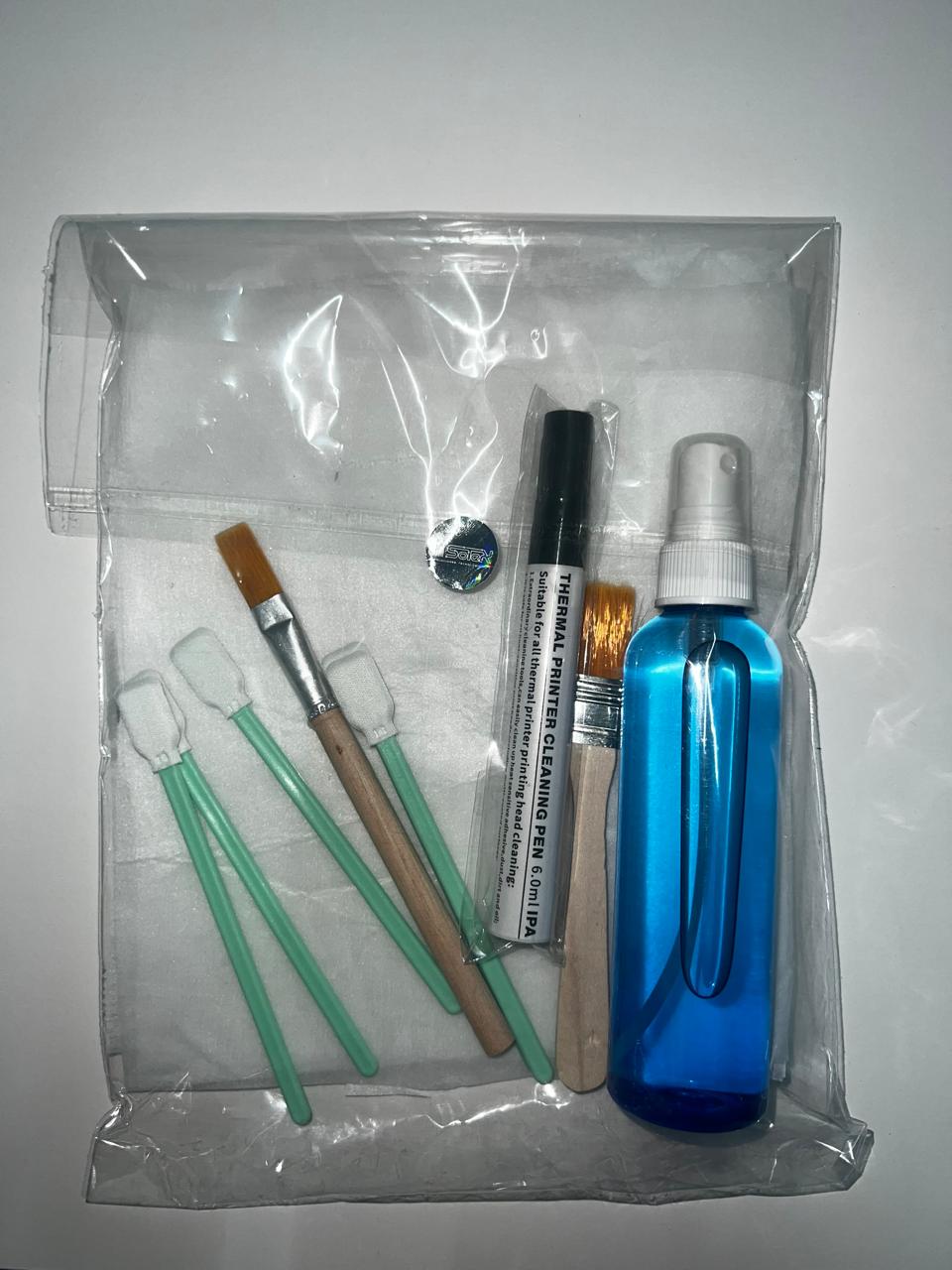 KIT DE LIMPIEZA DE CABEZAL CON ALCOHOL ISOPROPILICO PARA IMPRESORA TERMICA ZEBRA,TSC,HONEYWELL,SATO,DATAMAX INCLUYE 10.PZS MICROFIBRA 1PZ.300MILILITROS ALCOHOL ISOPROPILICO 1PZ.PLUMON PARA LIMPIEZA DE CABEZAL 5.PZS COTONETE PARA LIMPIEZA DE CABEZAL 2PZS BROCHA FINA PARA POLVO LIMPIEZA GENERAL